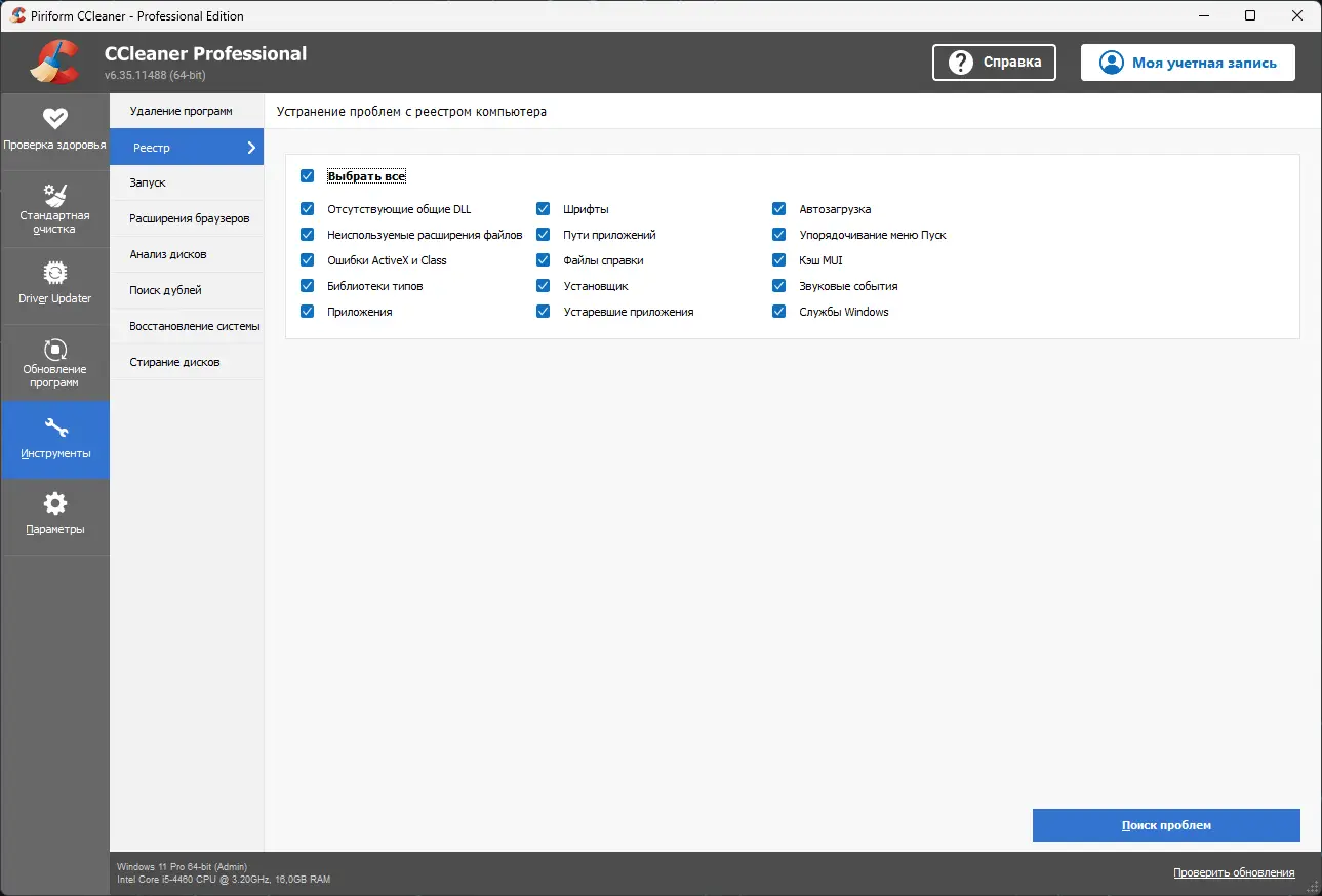 - Програма відкриється негайно і буде готова до очищення та оптимізації вашої системи.